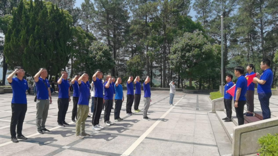 在四明山革命烈士陵園,黨員代表向革命烈士紀念塔敬獻花圈,全體黨員鞠躬默哀、瞻仰紀念塔,并緩步繞行紀念塔一周,憑吊革命先烈,緬懷、悼念英雄們的豐功偉績。在支部書記胥峰的帶領下,全體黨員重溫入黨誓詞。