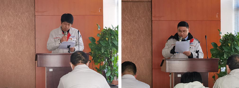 胡經國、游云鵬兩名同志作表態發言,表示今后將以更高標準要求自己,不斷提高自身修養,團結帶領部門員工為公司發展作出應有貢獻!