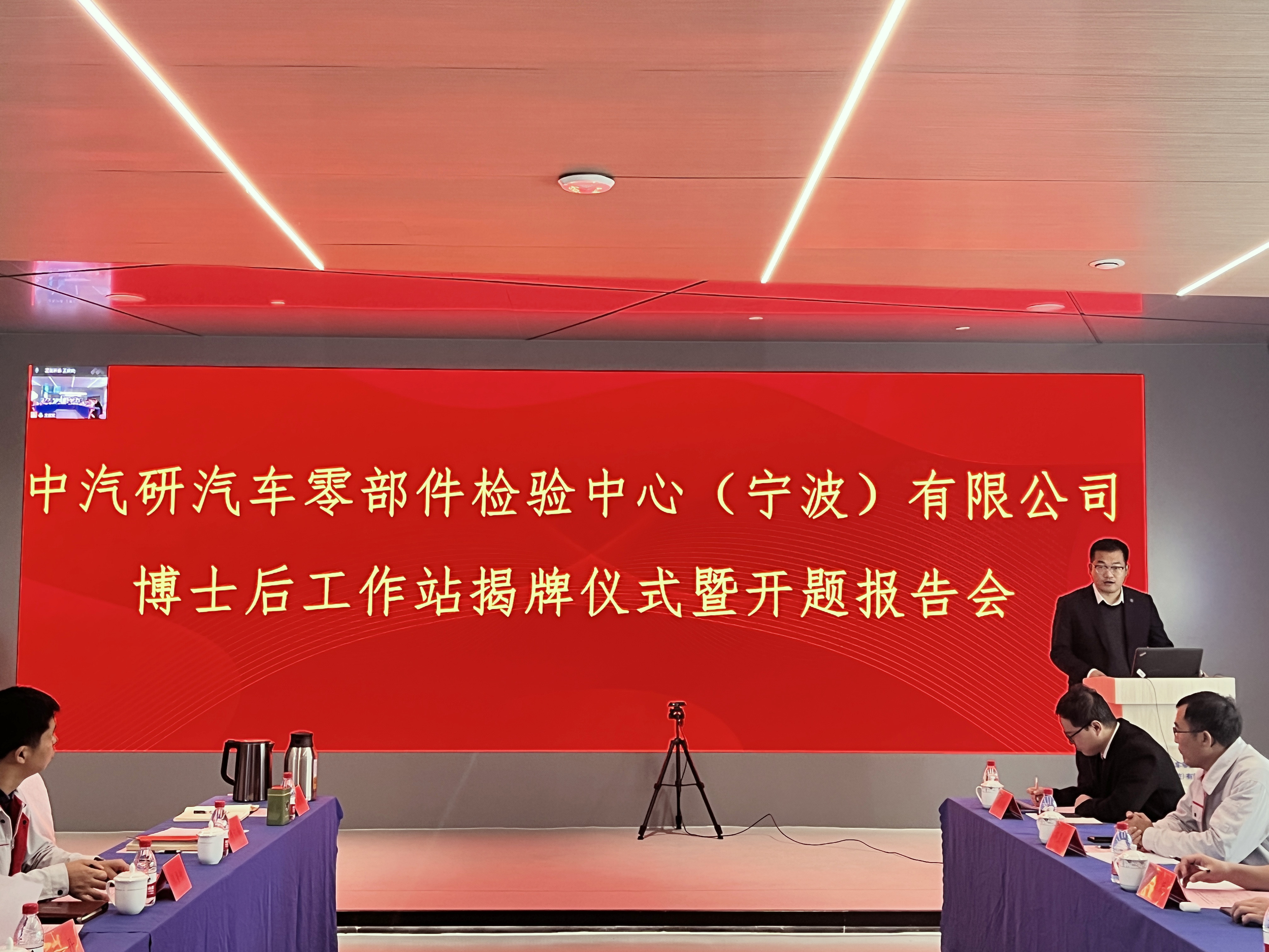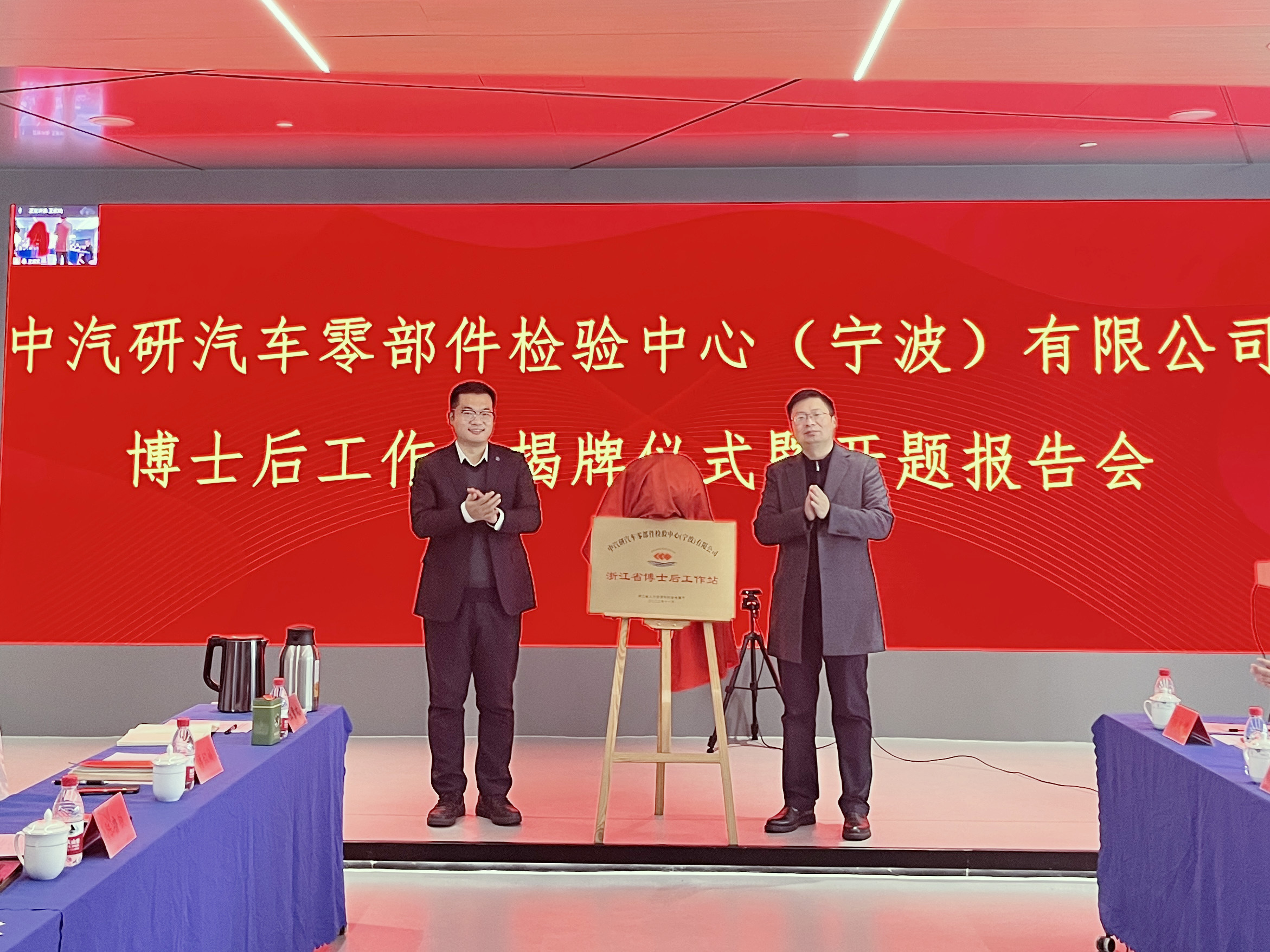 12月1日,博士后工作站授牌儀式暨開題報(bào)告會(huì)在中汽研汽車零部件檢驗(yàn)中心(寧波)有限公司(以下簡稱“寧波零部件公司”)舉行。寧波市人力資源和社會(huì)保障局專技處處長郭濤、鄞州區(qū)人力資源和社會(huì)保障局專技科科長王輝應(yīng)邀出席;寧波大學(xué)機(jī)械工程與力學(xué)學(xué)院副院長彭文飛、重慶大學(xué)博士生導(dǎo)師、教授廖昌榮等評審專家,寧波零部件公司黨支部書記、副總經(jīng)理曹建驍,常務(wù)副總經(jīng)理王振新、副總經(jīng)理傅鍵等參加會(huì)議。